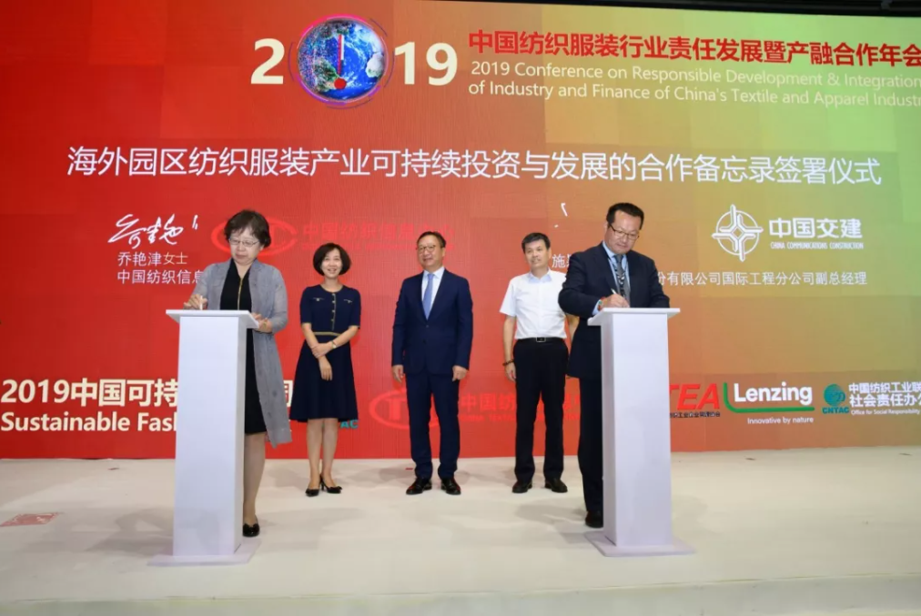 China Textile Information Center and China Communications Construction Co., Ltd. International Engineering Branch signed the "Memorandum of Cooperation on Sustainable Investment and Development of Textile and Apparel Industry in Overseas Parks", and will carry out effective cooperation on investment and sustainable development of textile and apparel industry in overseas parks in the future. , to promote and assist the overseas responsible investment of Chinese textile and garment enterprises.
