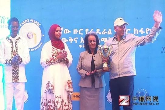 埃塞俄比亞總統(tǒng)薩赫勒·沃克·祖德(Sahlework Zewde)為華堅(jiān)集團(tuán)董事長張華榮頒發(fā)榮譽(yù)獎(jiǎng)杯