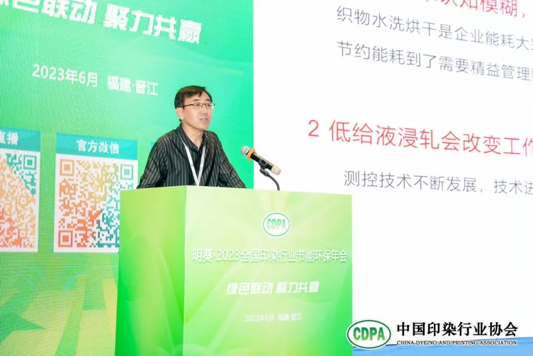 東華大學(xué)教授/博導(dǎo)王煒作《印染行業(yè)低給液技術(shù)的應(yīng)用》專題報(bào)告。王煒指出,與傳統(tǒng)染整工藝相比,低給液量染整技術(shù)會(huì)顯著降低能耗水耗、減少化學(xué)藥劑用量,有助于企業(yè)降低能耗、提升產(chǎn)能、降低成本,提高經(jīng)營(yíng)利潤(rùn)。