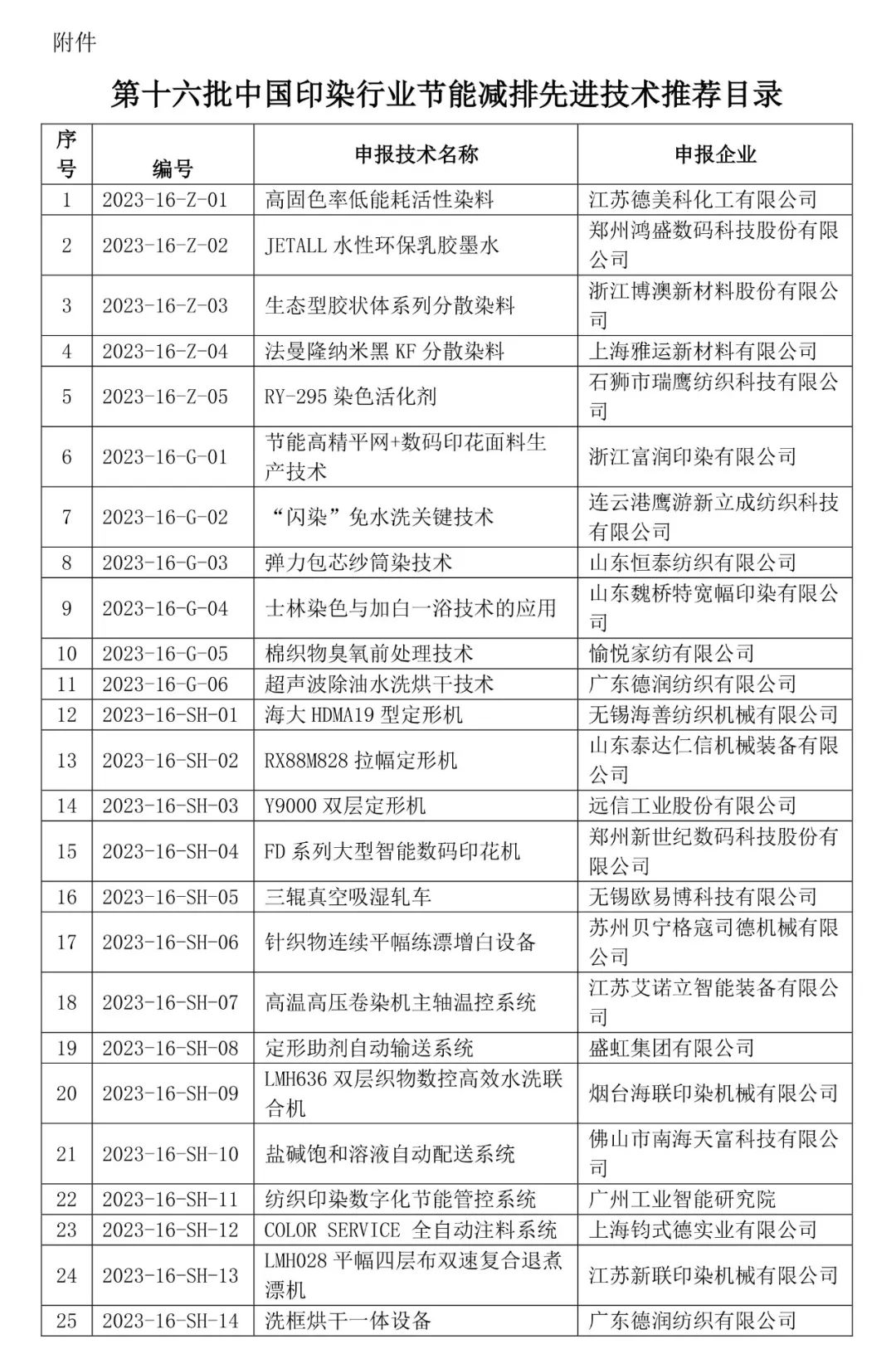 中國(guó)印染行業(yè)協(xié)會(huì)副會(huì)長(zhǎng)兼秘書(shū)長(zhǎng)林琳宣讀了《關(guān)于印發(fā)<第十六批中國(guó)印染行業(yè)節(jié)能減排先進(jìn)技術(shù)推薦目錄>的通知》,并為相關(guān)企業(yè)頒發(fā)了證書(shū)。此次共推薦節(jié)能減排先進(jìn)技術(shù)44項(xiàng)(名單見(jiàn)附件)。