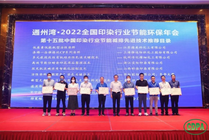 為加快綠色低碳技術的推廣應用,推動印染行業全面綠色轉型,實現高質量發展和高水平保護,8月11日,由中國印染行業協會主辦、通州灣江海聯動開發示范區管理委員會協辦的“通州灣•2022全國印染行業節能環保年會”在江蘇省南通市隆重舉行。會議圍繞國家最新環境管理政策、印染行業碳減排路徑和技術、綠色低碳技術和裝備研發應用、高效印染廢水廢氣處理技術等展開了探討和交流。會上還發布了《第十五批中國印染行業節能減排先進技術推薦目錄》。