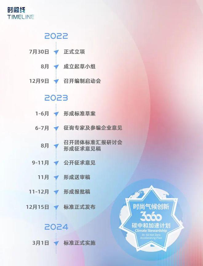 依照工信部《工業(yè)領(lǐng)域碳達(dá)峰實(shí)施方案》,三項(xiàng)團(tuán)體標(biāo)準(zhǔn)由中國(guó)紡織工業(yè)聯(lián)合會(huì)提出,由中國(guó)紡織工業(yè)聯(lián)合會(huì)標(biāo)準(zhǔn)化技術(shù)委員會(huì)歸口。標(biāo)準(zhǔn)自2022年7月起立項(xiàng),共歷經(jīng)20個(gè)月于2023年12月15日完成起草工作和審批,2024年3月實(shí)施。在中國(guó)紡織工業(yè)聯(lián)合會(huì)社會(huì)責(zé)任辦公室的組織下,總計(jì)22家“時(shí)尚品牌30·60碳中和加速計(jì)劃”行動(dòng)企業(yè)和9個(gè)分行業(yè)組織分別參與到標(biāo)準(zhǔn)起草工作,起草小組在過(guò)程中進(jìn)行了多輪研究討論及專(zhuān)家咨詢,對(duì)重大問(wèn)題進(jìn)行審慎研究,最終達(dá)成共識(shí)形成標(biāo)準(zhǔn)發(fā)布稿。
