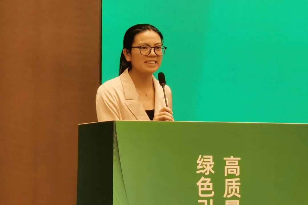 浙江海利環保科技股份有限公司營銷總監林靈玲在《循環經濟中的綠色創新與可持續發展》報告中,圍繞綠色可持續發展和綠色纖維產品認證在企業經營中的意義和應用展開講解。