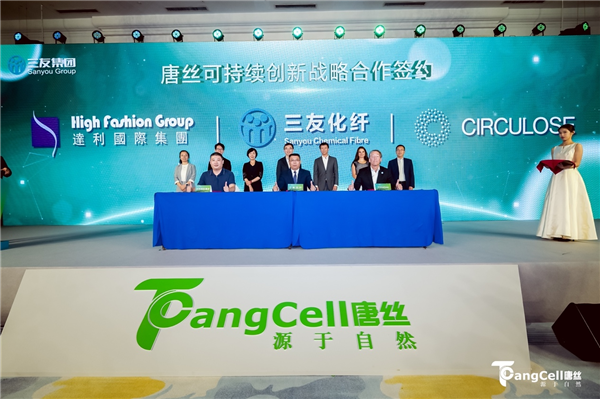 在本次發布會上,唐山三友化纖分別與達利、Circulose達成三方基于“可持續時尚”的戰略合作關系,將依托使用循環再生原料CIRCULOSE®生產的唐絲™循環再生纖維ReVisco™,共同推動環保、減碳事業的發展。唐山三友化纖與福恩達成可持續戰略合作關系,將依托唐絲™環保彩纖和福恩色紡面料紛緯®的優質產品,共同推動服裝產業的發展和綠色環保事業的進步。