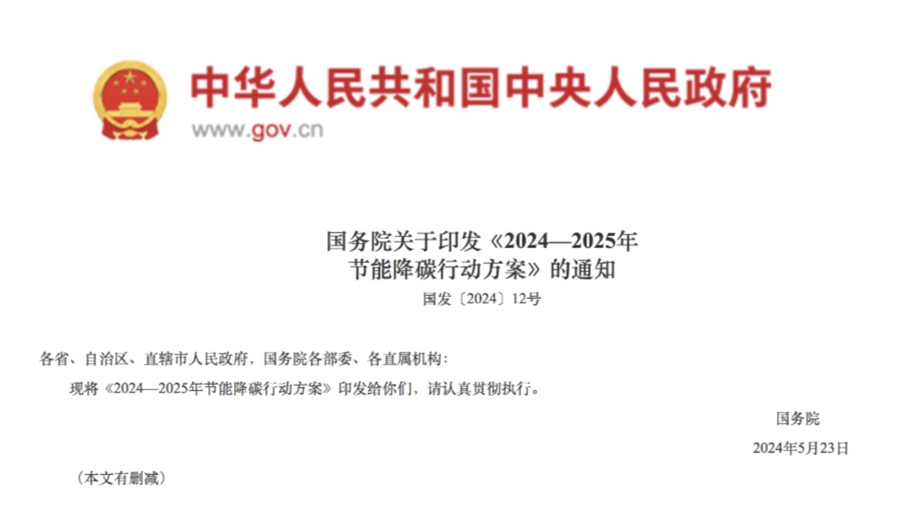 近日,國務院正式發布《2024—2025年節能降碳行動方案》。