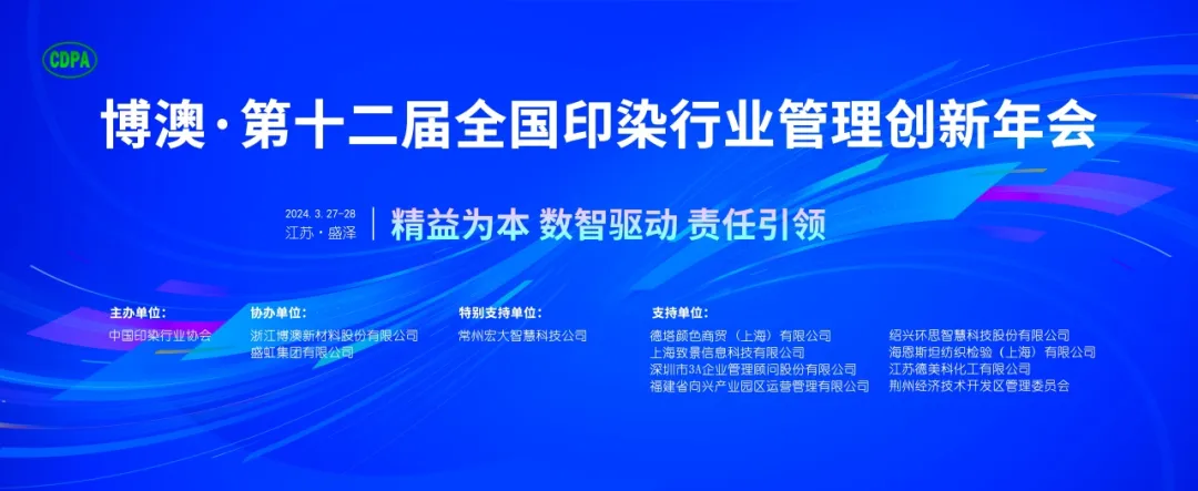 3月27日,博澳·第十二屆全國印染行業(yè)管理創(chuàng)新年會在江蘇省盛澤鎮(zhèn)成功召開。