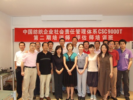 隨著中國紡織工業(yè)協(xié)會企業(yè)社會責(zé)任建設(shè)推廣工作的進(jìn)一步廣泛深入地開展,尤其是中國紡織企業(yè)社會責(zé)任管理體系CSC9000T“10+100+1000”項目的抓緊落實,急需更多的CSC9000T專業(yè)培訓(xùn)、評估專家充實到一線的企業(yè)中去工作,為此,2007年8月10--12日中國紡織企業(yè)社會責(zé)任管理體系CSC9000T第二期培訓(xùn)師、評估]師培訓(xùn)班在京舉行,來自RSCA 合作機(jī)構(gòu)TUV NORD集團(tuán)德國漢德技術(shù)監(jiān)督服務(wù)有限公司、北京經(jīng)典智業(yè)認(rèn)證咨詢中心、SGS通標(biāo)標(biāo)準(zhǔn)技術(shù)服務(wù)有限公司以及DNV挪威船級社的11位企業(yè)社會責(zé)任專家參加了培訓(xùn)活動,中國紡織工業(yè)協(xié)會副會長孫瑞哲親自到會并希望專家們與中國紡織工業(yè)協(xié)會共同努力為推動中國紡織行業(yè)社會責(zé)任建設(shè)作出更大貢獻(xiàn)。