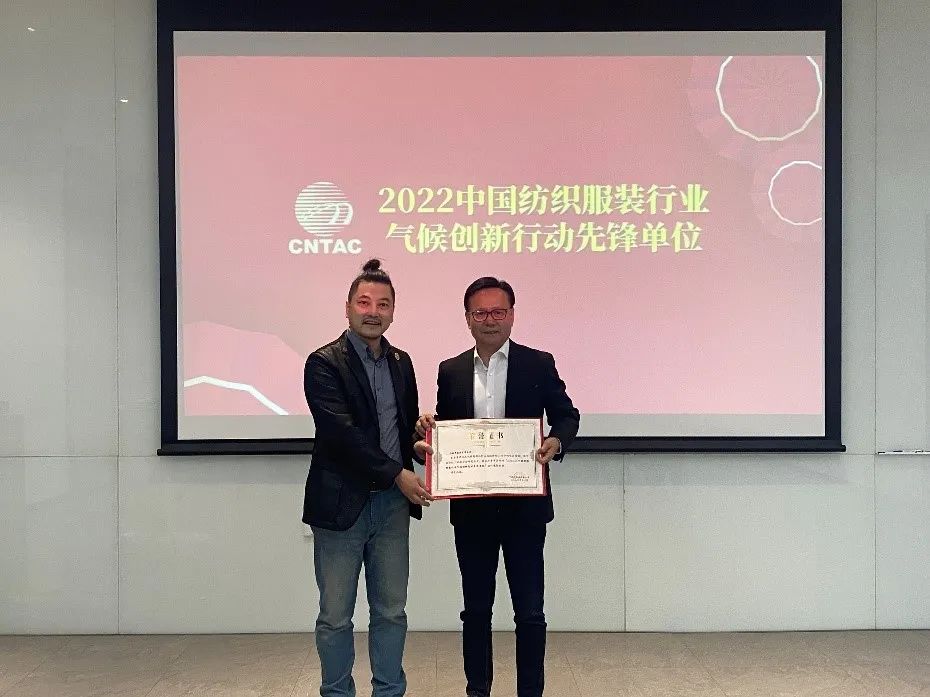 圖為“2022中國紡織服裝行業(yè)氣候創(chuàng)新行動(dòng)先鋒單位”頒獎(jiǎng)現(xiàn)場