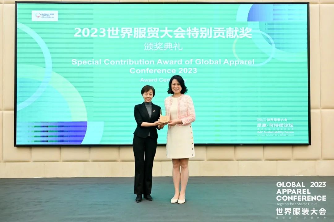 世界服裝大會(huì)著眼長(zhǎng)遠(yuǎn)目標(biāo)和現(xiàn)實(shí)需要,凝聚國(guó)際共識(shí)與創(chuàng)新實(shí)踐,為開(kāi)展全方位互利合作搭建新平臺(tái)、開(kāi)辟新前景。為表彰企業(yè)對(duì)2023世界服裝大會(huì)——可持續(xù)創(chuàng)新論壇的大力支持,閻巖為昂高化工(中國(guó))有限公司頒發(fā)了特別貢獻(xiàn)獎(jiǎng)。昂高化工(中國(guó))有限公司代表在采訪中表示,昂高將在未來(lái)不斷探索在產(chǎn)品配方中使用更多天然和可再生的原材料的方法,通過(guò)提高最終產(chǎn)品的可回收性和生物可降解性促進(jìn)物料循環(huán),提供可以安全使用、符合環(huán)保法規(guī)的新型耐久防水劑解決方案。