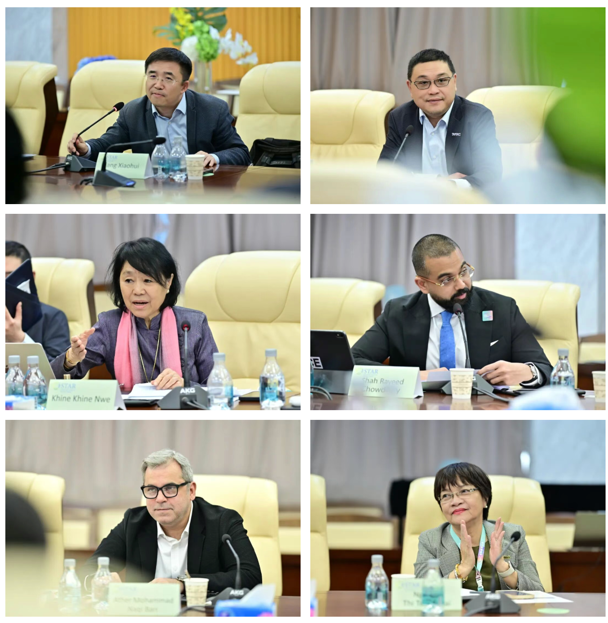 接下來,各機構代表就強化STAR網絡內部治理、提升國際影響力、拓展區域性合作等內容展開討論。中國紡織工業聯合會社會責任辦公室首席研究員、STAR網絡副主席梁曉暉博士指出,中國紡聯將繼續依托虎門產業集聚區的優勢,推動STAR區域協同機制向實體化、功能化邁進,促進成員國在可持續標準、綠色技術、供應鏈透明度等方面的深度融合。他建議STAR網絡應持續參與全球紡織服裝行業治理議程,通過發布立場文件和國際會議等多渠道發聲,增強亞洲區域在可持續轉型中的話語權。同時,他就中國紡織服裝行業生產狀況、經濟與貿易表現、可持續發展的亮點等內容進行分享。柬埔寨紡織、服裝、鞋類和旅行用品協會(TAFTAC)秘書長Loo Chee Chien先生、緬甸服裝制造商協會(MGMA)秘書長Khine Khine Nwe女士、孟加拉國服裝制造商和出口商協會(BGMEA)董事Shah Rayeed Chowdhury先生、巴基斯坦襪業制造商和出口商協會(PHMA)主席Muhammad Babar Khan先生、巴基斯坦毛巾制造商協會(TMA)主席Ather Mohammad Naqi Bari先生、越南紡織服裝協會(VITAS)副秘書長Thi Tuyet Mai Nguyen女士、STAR網絡發言人Miran Ali先生等各機構代表就相關議題展開熱烈討論,并就本國市場動態、挑戰與機遇進行分享。
