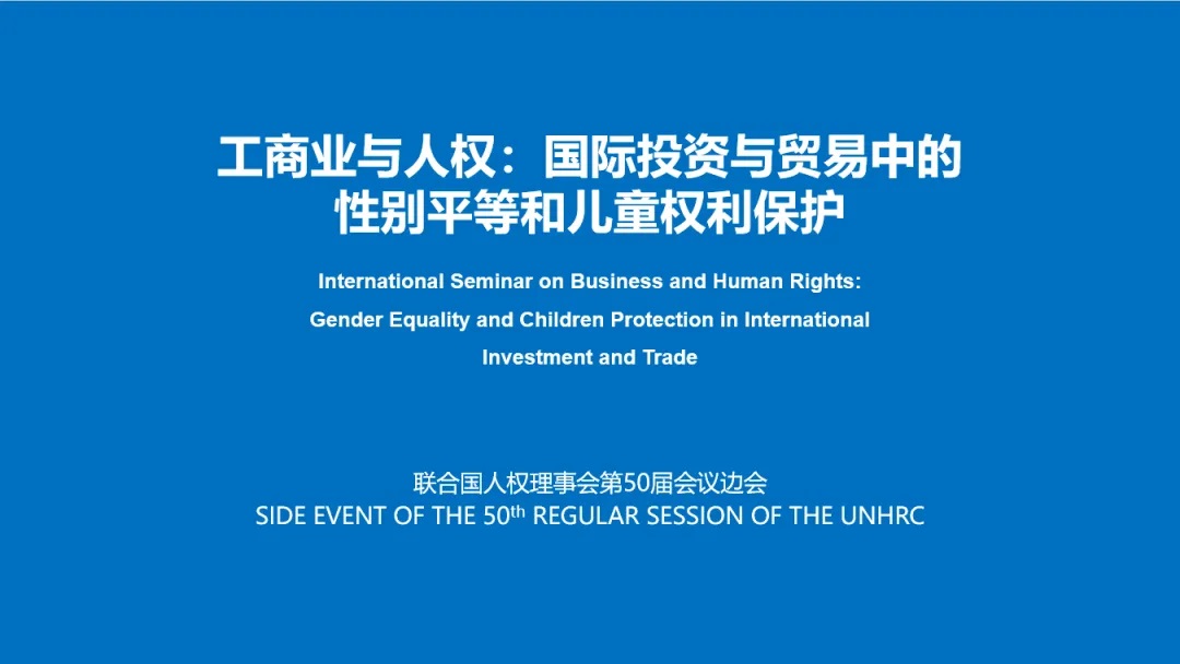 在聯(lián)合國人權理事會第50屆會議期間,以“工商業(yè)與人權:國際投資與貿(mào)易中的性別平等和兒童權利保護”為主題的云上邊會7月6日舉行。